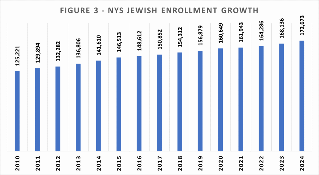 • Jewish Schools grew by 4,537 students – an increase of 2.7% over the prior year.