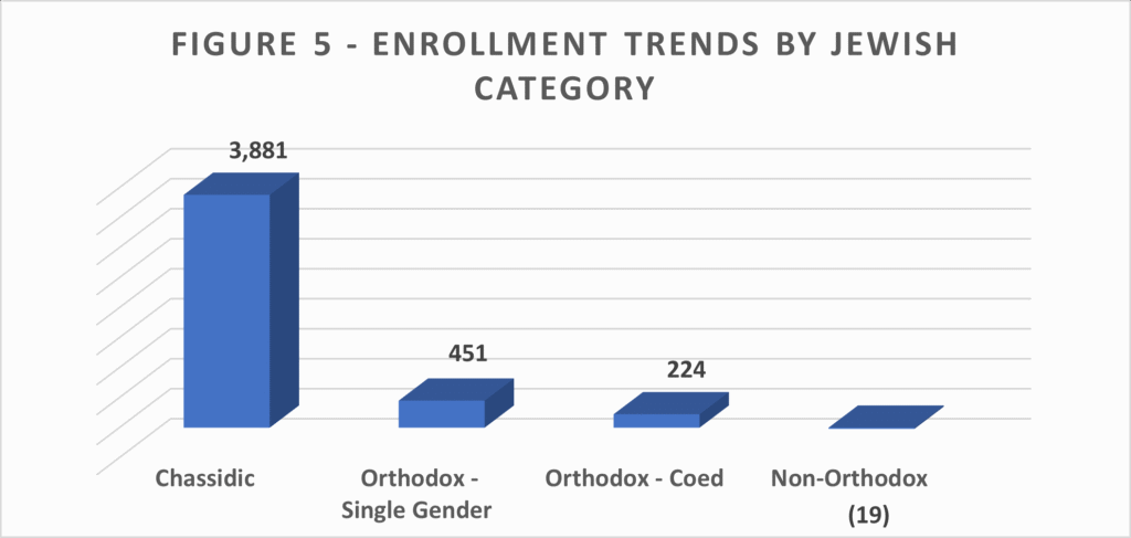 Chassidic Schools saw the largest enrollment growth, with an additional enrollment of 3,881 students (+4.0%).